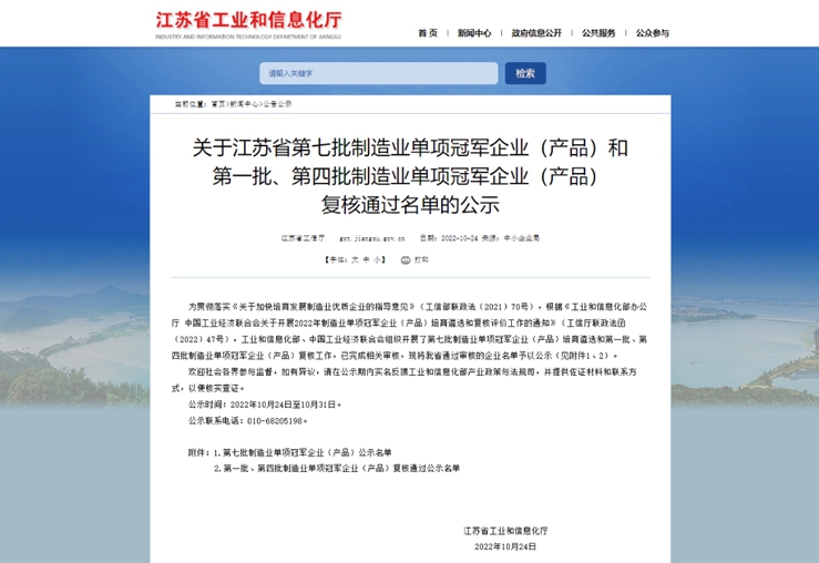 近日,工業和信息化部、中國工業經濟聯合會組織開展了第七批制造業單項冠軍企業(產品)培育遴選工作,江蘇省工業和信息化廳公布了第七批制造業單項冠軍企業擬認定名單,周市鎮華辰精密裝備(昆山)股份有限公司成功入選,是昆山首家獲此殊榮的企業,實現了從省級專精特新中小企業、國家級專精特新“小巨人”企業到國家級制造業單項冠軍企業“三級跳”。